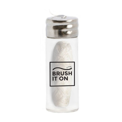 Brush It On's compostable dental floss is coated in a candelilla wax and has a fresh mint flavour. The glass vase contains silk floss while the refills contain corn starch floss that is plant-based and vegan friendly.